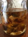 漬けた梅がようやく砂糖が溶けて、飲めるように。氷でキンキンに冷やした水に、大さじ1杯くらい入れると、爽やかな梅ジュースの出来上がり。かおは気に入ったそう。水分摂るのが苦手だけど、これなら飲める、だそうだ。水筒に入れていくかな。