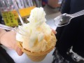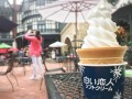 かおのLineより。開陽台展望台ではちみつソフトを食べた。バスで移動中は寝ていて、宿でおいしいものを食べて、夜は恋バナとかしてるらしい。アイスクリームは1日3個くらい食べているとか。写真のは、夕張メロン味のアイスクリーム。