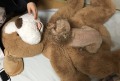 最近、メイちゃんが2階の寝室に侵入するようになった。正確には、階段を上りたそうにしているメイちゃんをさしゃが抱っこして、送り込むのだけど。部屋では、さしゃの大きな犬のぬいぐるみ、ヨーゼフと壁の隙間とかで寝ていたりするんだけど、無理やり上に乗せて、写真を撮ってみた。