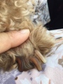 めいたの前足の爪、ふと見たら、3色だった。クリーム色、黄土色、茶色。今まで気づかなかったのかな?と思ったら、成長途中で変わることもあるらしい。不思議。