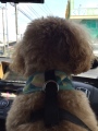 さしゃを待つメイちゃん。助手席のさしゃが降りた後、私が運転席のシートを後に下げると、メイちゃんが膝に乗っかってくる。メイちゃんの前足2つが私の腿に刺さるくらい、…重い。