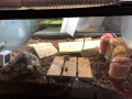 かえちゃんの旧館(60㎝水槽)の方は、遊び場になっている。シーソーとタワシのトンネルがあるんだけど、たまにパワフルな遊び方をするらしく、バラバラになる時もある…。まぁ、置きなおすだけだからいいんだけど。