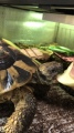 シェルターで寝ている、かえちゃん。さしゃは甲羅の柄で、どっちの向きで埋まってるかわかるらしい。