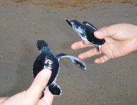 産まれて4日目という海ガメの赤ちゃんを海に放流した。