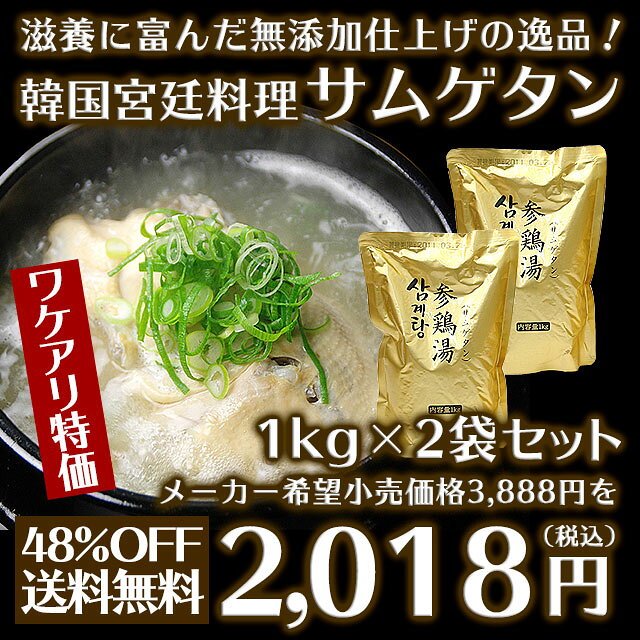 1キロ入りが2袋で送料込み2018円です。 これは何度かリピしている商品です。 QVCでも紹介されている商品と同じ物でもちろんこちらで買う方がお安いです。 薄味なので、自分で味を調整出来ます。 常温保存出来るのもいいですよね。 【常温・冷凍・冷蔵可】プロが選んだ・焼肉店向け業務用の韓国宮廷料理・参鶏湯(サムゲタン)(業務用レトルト参鶏湯1kg袋入り)×2袋(約4~6人前)賞味期限2018年11月23日