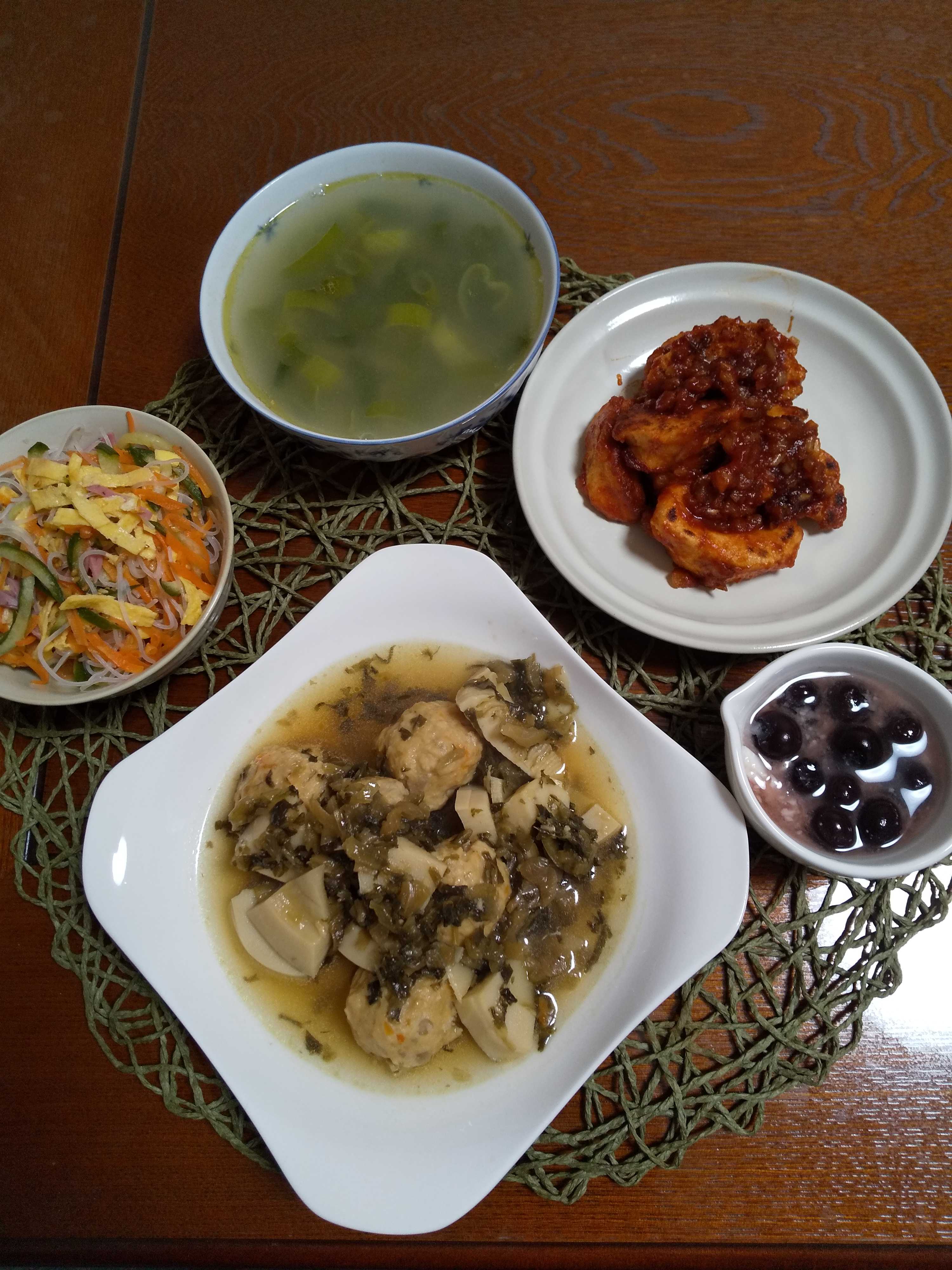 今日の夕飯です。 久しぶりに竹の子と高菜の炒め煮を作りました。 かさ増し鶏…