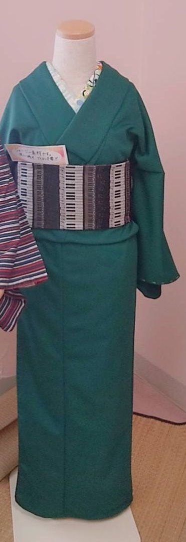 背や袖付けなどなど見えないところはミシン、衿や裾、袖口などの見えいる部分は手縫いで縫っているので見た目は普通のきものと変わりません。