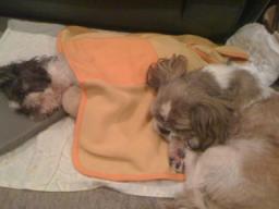決してお金で買えない物の一つ、それがショーンの寝顔。 グーグー、イビキをかいて寝てるのね。後ろ足がピクピク、夢を見てるのかな。ワフワフ、かわいい寝言だね。ずっと眺めていたい私の宝物