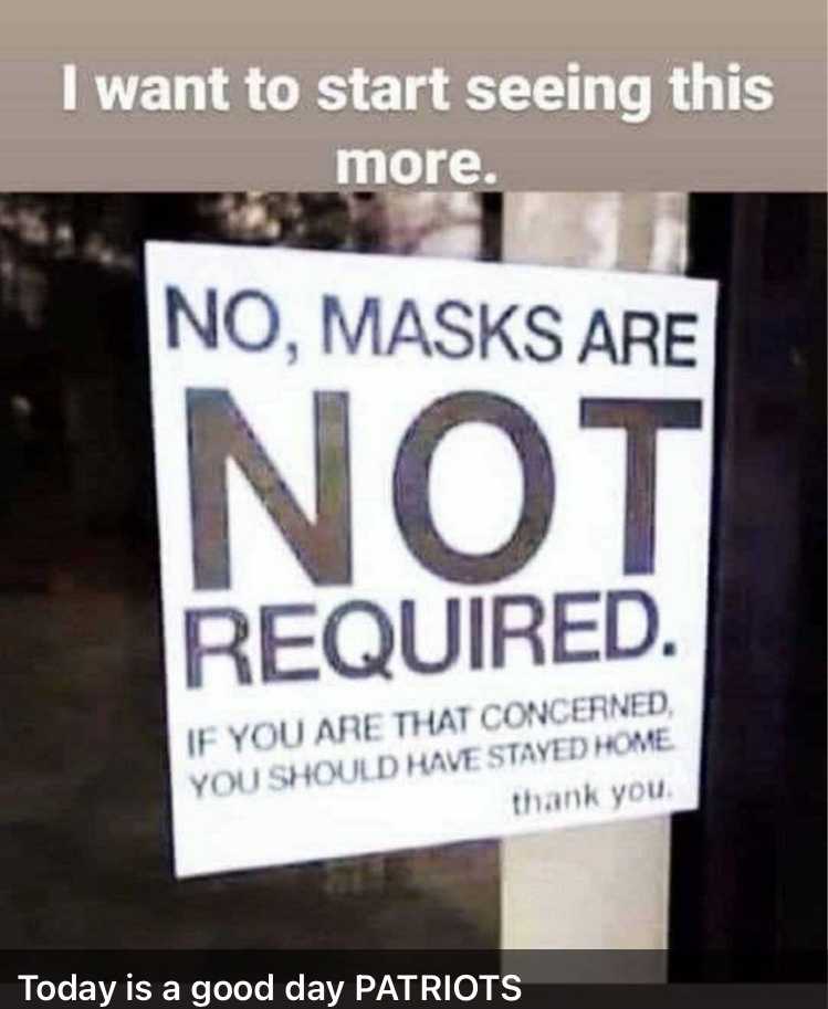 私は民主党が強い州に住んでいるが、一度もマスクをしたことがないんだ。人に言われたことは二、三度あるだけだ。ある日グローサリー店を出て、車に戻ろうとしていたんだ。そうしたら、マスクをした女性が店の方にやって来ようとしていた。駐車場から私に向かって何やら叫んだんだ。”鼻水が出てね、あなたマスクしてないじゃないの” そう言いながら私の方に歩いて来た。”くそ!彼女も文句言いそうだな”