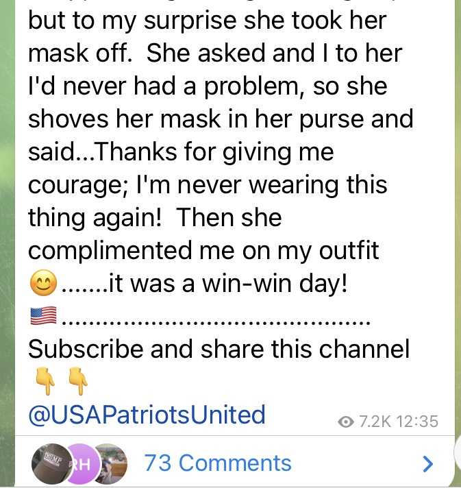 ところが驚いたよ、彼女はマスクを外したんだ。そして私に、マスクなしで何か問題があったかと聞いてきたんだ、だからなんともないと答えた。そうしたら、彼女は外したマスクをパースに突っ込んだ。そして言ったんだ。”私に勇気をくれてありがとう、もう二度とマスクはつけないわ!” それから私が着ていた上着を褒めて立ち去った。