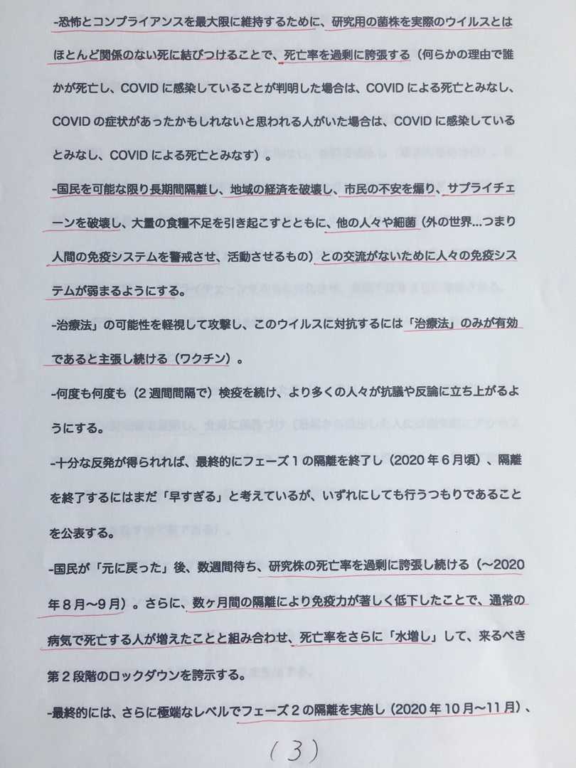 ”大多数の人々がアジェンダに反した場合は、フェーズ3として、兵器化された(生物兵器)SARS/HIV/MERSの3種のウィルスを放出する。”