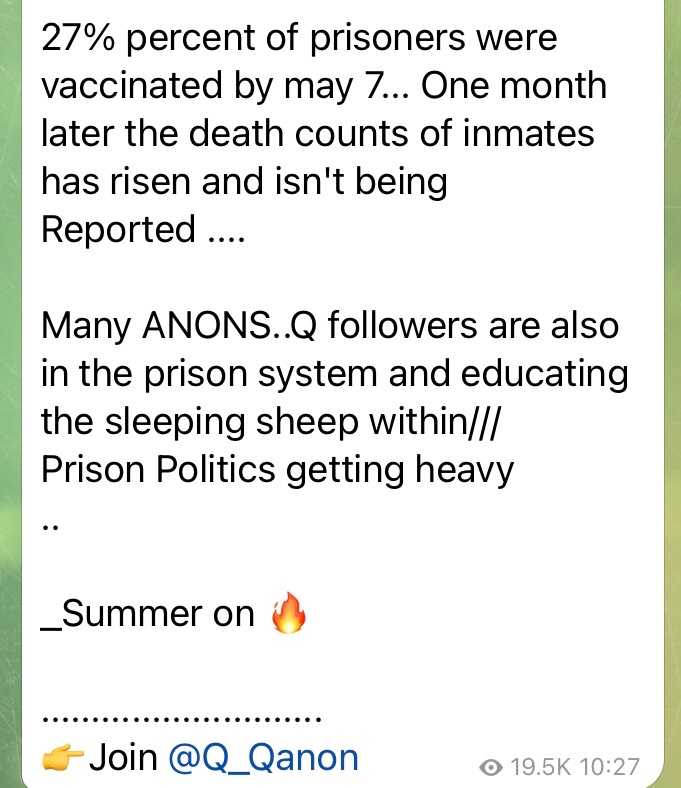 多くのQアノン、Q支持者が刑務所組織内にいる、中にいる眠っている羊たちを教育している。刑務所内の駆け引きが厳しくなる中で。