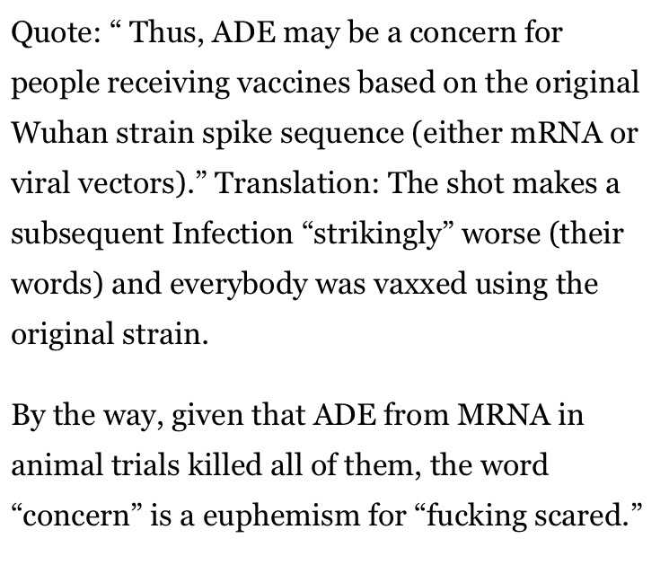 ところで、動物実験で、mRNAからADEが起きた場合、全てが死にました。”懸念”という言葉は、”恐ろしい” という意味の婉曲表現です。