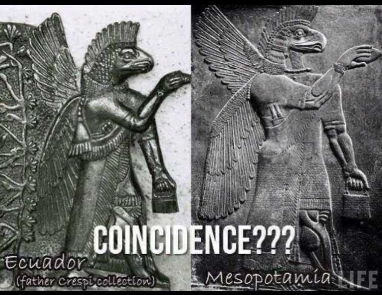 左はエクアドル(アンデス文明、1万4千年前)と、右はメソポタミア文明、5千年前と言われている?