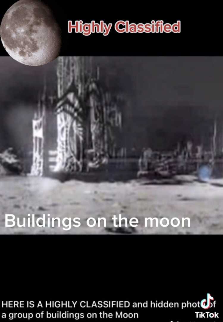 これは、極秘情報として隠されていたもの、月にある複数の建物の写真です。