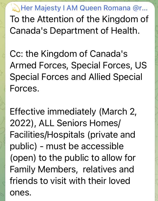 今朝カナダのロマーナ女王が素晴らしい女王政令を発令されましたのでご紹介します。因みに、ロマーナ女王はカナダ王国の元首、カナダ軍の最高司令官でもあります。トルドーはとっくの昔に逮捕されてます。