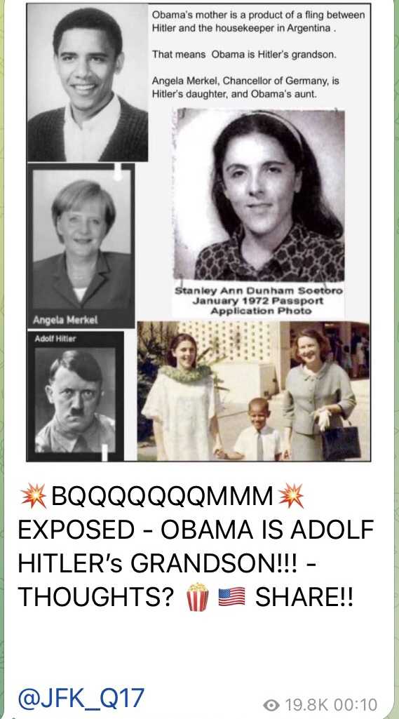 ヒトラーには3人の娘がいて、一人はドイツのメルケル元首相、一人はイギリスのメイ元首相、そしてもう一人はオバマの母親、アン ダナムです。父親はケニア人です、オバマはケニア人として大統領になりました、それだけで大統領の資格はありません。ハワイ生まれということになっていますが、大統領選に出馬した時から疑問視されています。本名をバリー ソエトロというそうです。