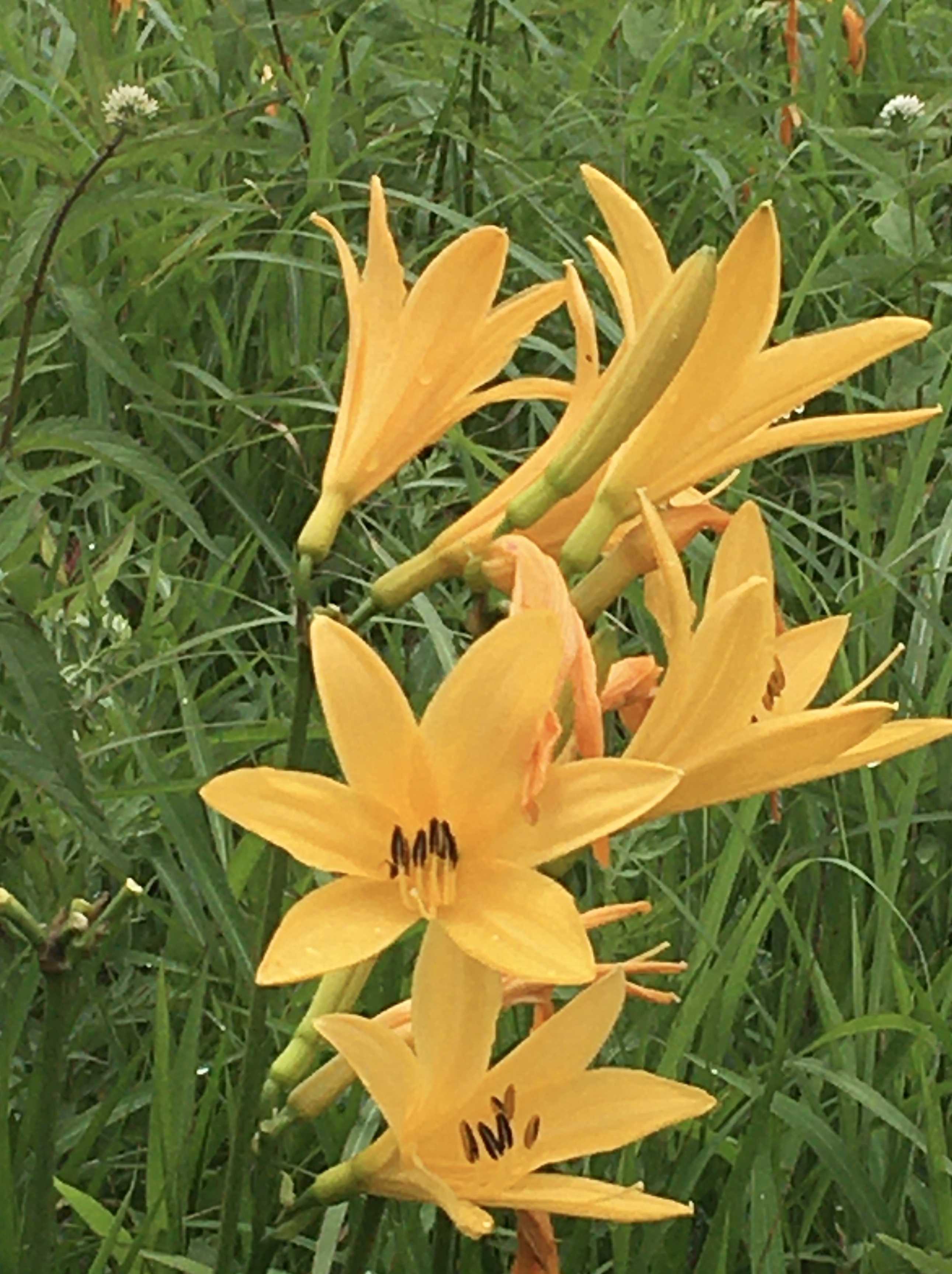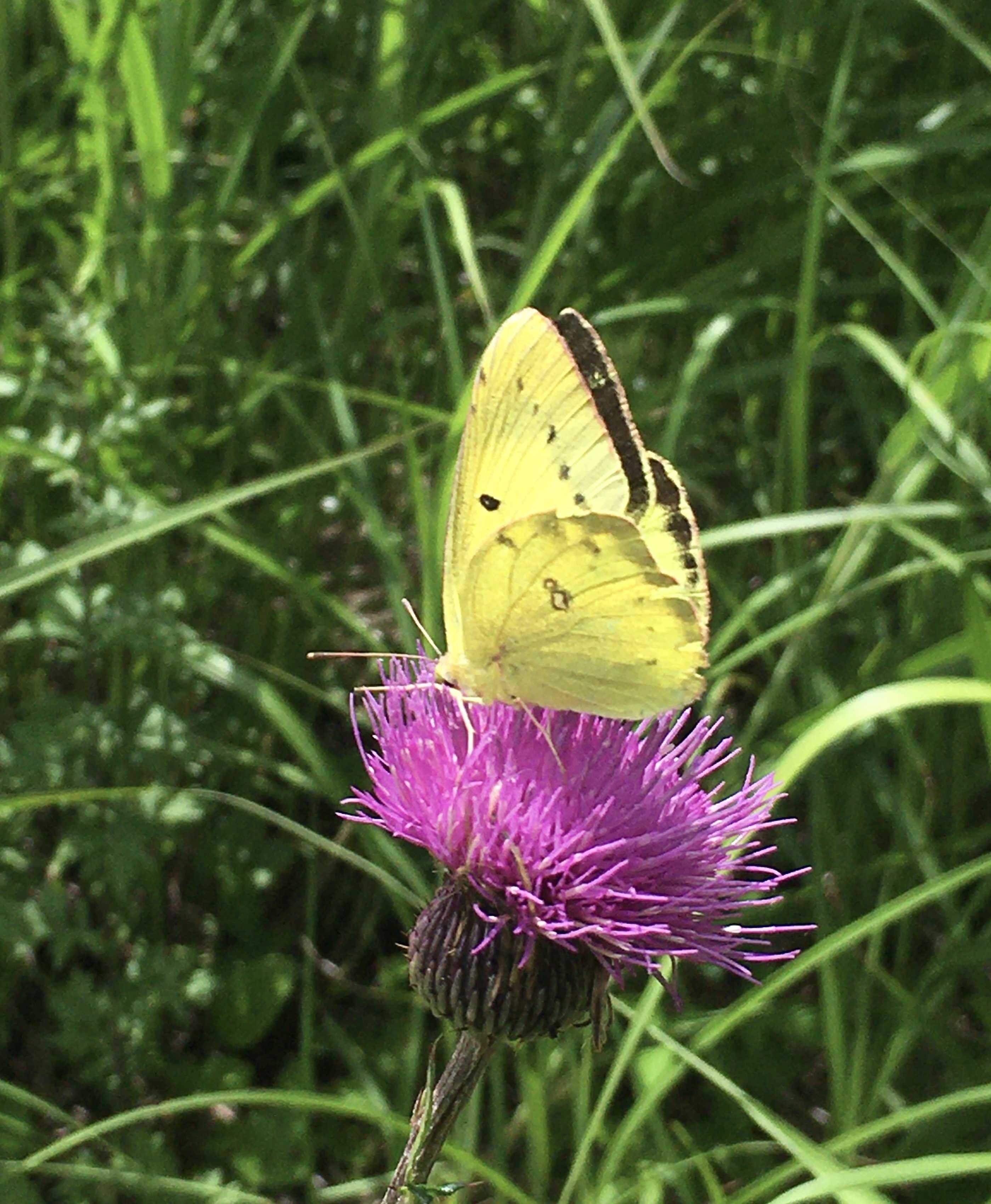 ニッコウキスゲは毎日新しい花が咲くそうです。昨夜の土砂降りの雨の後で一斉に咲いたのかもしれません。最後の写真は家の近くで、ちょうどアザミに止まっていた蝶がいたので撮りました。蜜を吸うのに一生懸命で私に気づかなかった😊