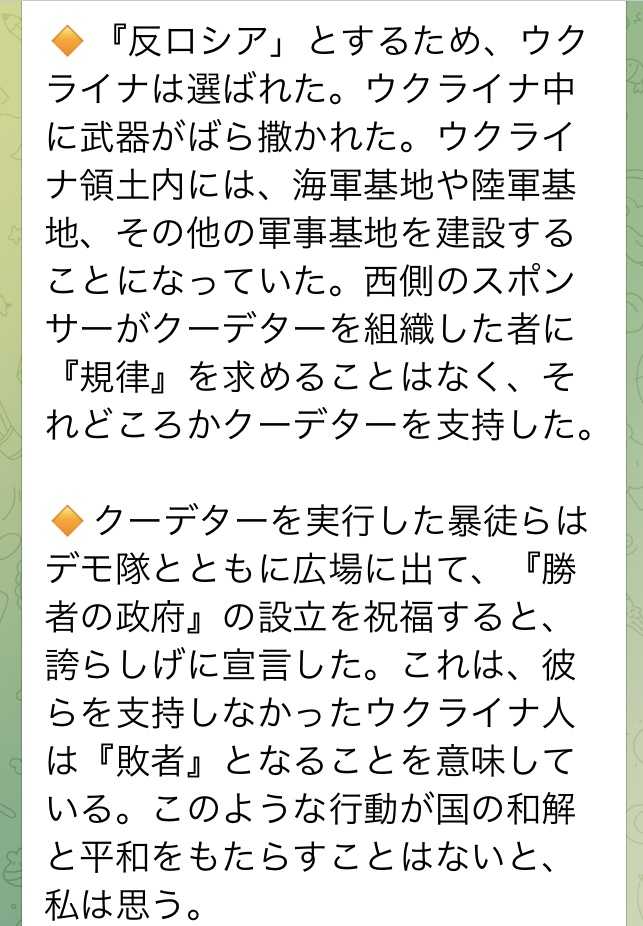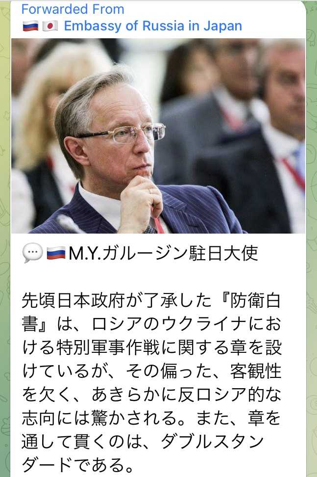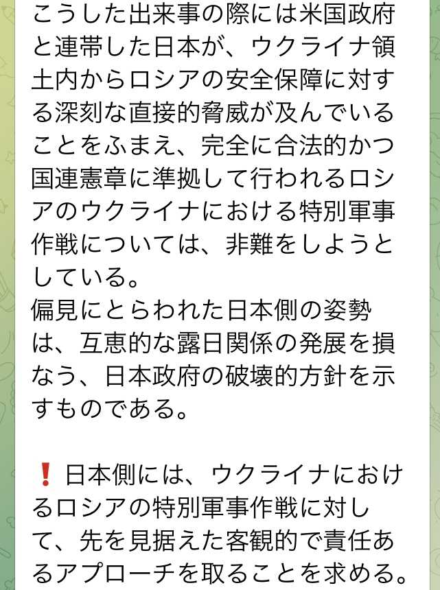 こちらはテレグラム、TokomaD3さん投稿から(ロシア大使館から転送メッセージ)