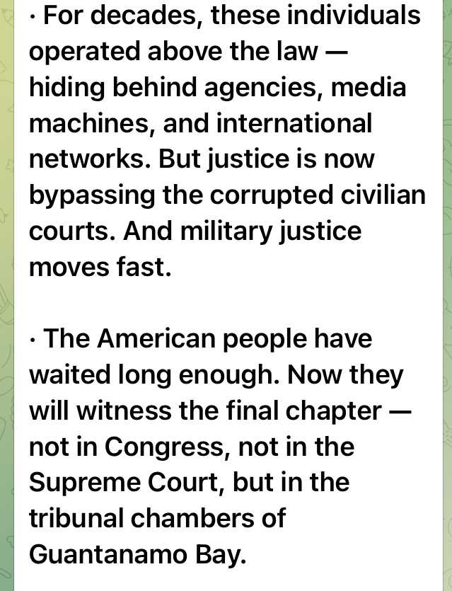 何十年もの間、これら個人は法を超えて活動して来た。 ー エージェンシー、メディアマシーン、インターナショナルネットワークの陰に隠れていた。しかし、正義は今腐敗した民事裁判を迂回している。そして、軍の正義が速く動いている。