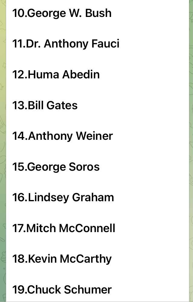 逮捕、処刑リストが公に出て来ましたのでご紹介します。彼ら皆数年前に最高司令官トランプ大統領によって逮捕、処刑されていますが、いよいよショーがフィナーレへ向かっています。