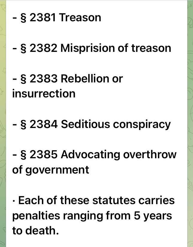 決して名前が公表されることはないだろうと彼らが考えていた以下のリストは、アメリカに対する国家反逆罪、暴動、そして陰謀を企んだ罪などで、現在行われている軍事法廷にかけられた個人のリストだ。次の法的なコード番号の下で行われた。