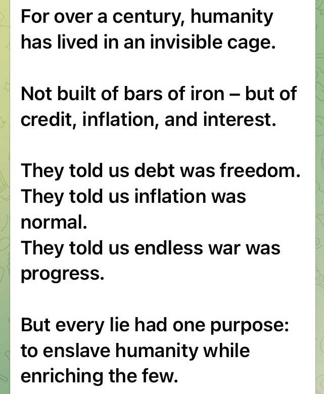 彼らは人類を負債地獄の奴隷にして来た。今、我々を自由にする計画が進行中だ。
