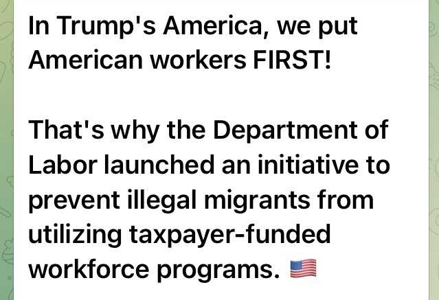 だから、Dept. of Labor(アメリカ合衆国労働省)は、不法移民たちが、我々の税金が投入されている労働力プログラムを利用することを防ぐための主導権を持っている。