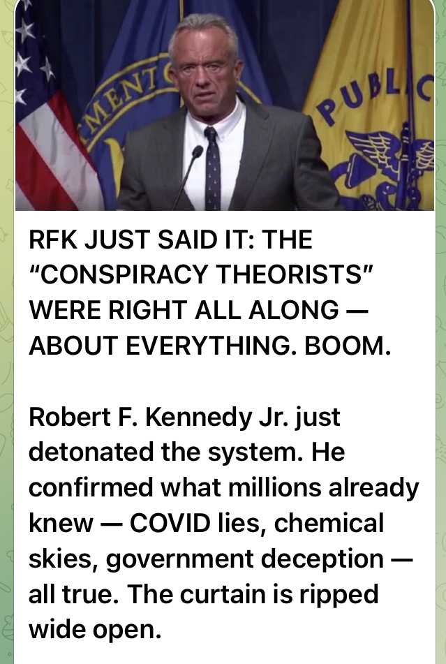 RFKがその事について言及した:”陰謀論者は正しかった ー 全てにおいて” バーン