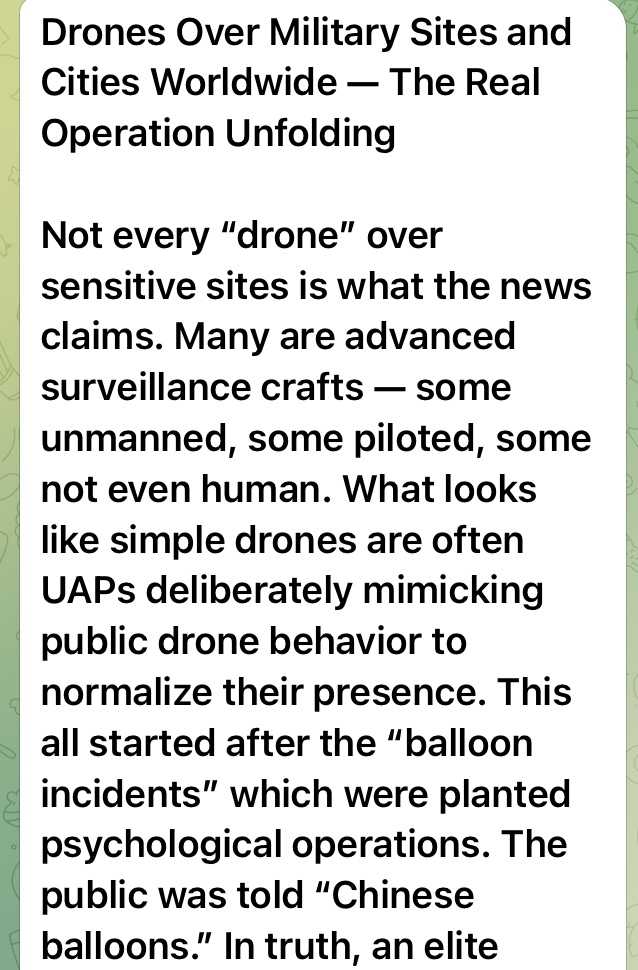 今日見られるドローンの波は偶然ではありません。これは史上最大の心理作戦のための事前条件付けです。