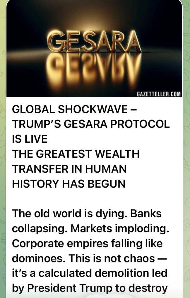中央銀行は追い詰められ、連邦準備制度は隅に追い込まれている。各国は金にシフトしている。トランプの指揮下にある財務省のタスクフォースは、人類史上最大の協調的な金融差押えを実行している。盗まれた金、ブラックバジェット資金、オフショア資産がGESARA法の下で主権口座に再配分されている。