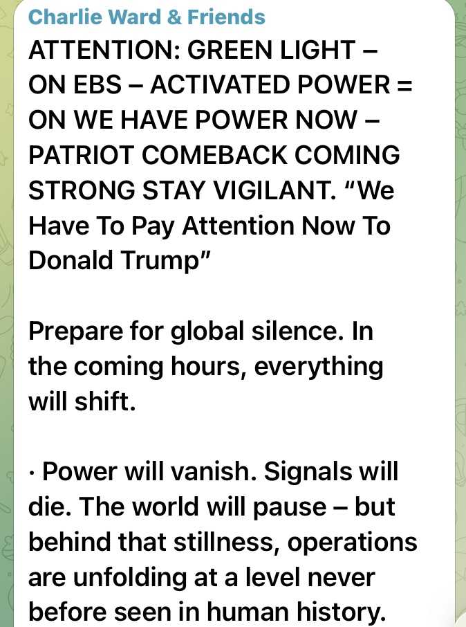 注意:グリーンライト – EBSで – 電源オン = 今、我々にパワーがあります – パトリオットのカムバックが強力に迫っています。警戒を怠らないでください。「