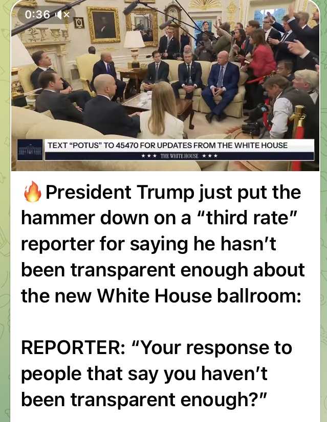 トランプ大統領が、新しいホワイトハウスのボールルームに関して透明性を欠いていると批判した "三流レポーター" にハンマーを下ろした。