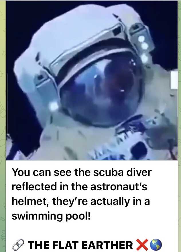 宇宙飛行士のヘルメットに映るスキューバダイバーが見えますか? 彼らは実際スイミングプールにいる。