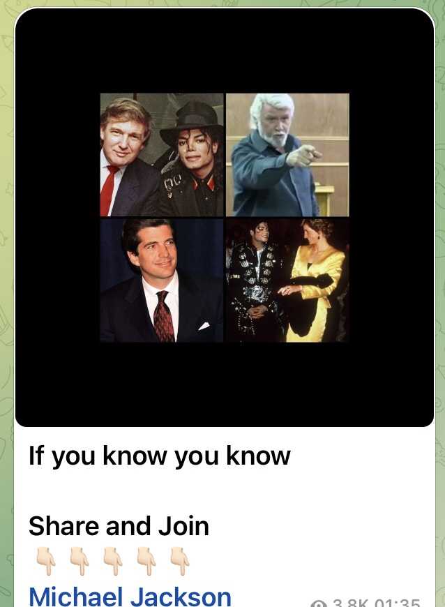 画像中の人々:左上はトランプ大統領とマイケル・ジャクソンさん、左下はJFK Jr. さん