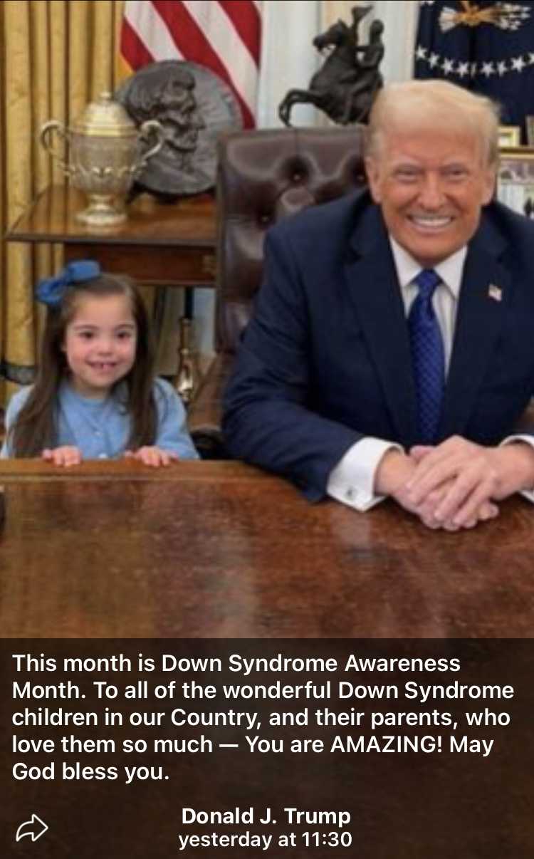 今月はダウンシンドローム認知月間です。アメリカの素晴らしいダウンシンドローム子供たちへ、そして彼らを愛して止まない両親へ ー あなた方は素晴らしい! 神のご加護がありますように。