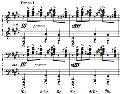 とある方のブログを読んでると、ラフマニノフの小品集をやってる、とあり、どんなんかなーとyoutubeで色々聴いていました。で、前奏曲 嬰ハ短調 の「鐘」。浅田真央ちゃんもフリー曲で使ったアレか…。確か黒い衣装ですべってたなー。。ぁー、もしかして私この曲って弾いた事あったっけ?と急に思い出す。てか、忘れてたってのもヒドイ!ホントに忘れてた。昔ピアノの先生からコピーさせてもらった楽譜の束を整理。あった。。Prelude in C sharp minor, Op. 3, No. 2. 超久々に弾いてみる。うむーシャープが一杯~。プロの人のを聴くと真ん中らへん、メッチャ早く弾いてたなぁ。はぁー。しかし、フォルテが4つとかってスゲーな。どんだけ強く弾くんだよ!!!!って思っちゃった♪スフォルティッシッシッシモ…て読むのか?? 「鐘」ってタイトルがあるのも知らず…。無知。クレムリン宮殿の鐘の音にインスピレーションを受けた作品とされ、「鐘」または「モスクワの鐘(The Bells of Moscow)」などの愛称で親しまれている。…なんだそうですね。。しかもラフマニノフの曲の中でも最も有名な曲のひとつ、とか書いてあったよ。どっかに。追記。最後の方のところ。4段譜っていうんですね、コレ。。ンン? 何これ? どーなってんの? もはやすっかり忘れております。よく見れば、上2段を右手で、下2段を左手で弾けばいいのね!ペダル踏みまくって~。五線譜を片手に2つ使って広々書いちゃった、て感じかぃ~?明日また時間あれば練習しよう…。。