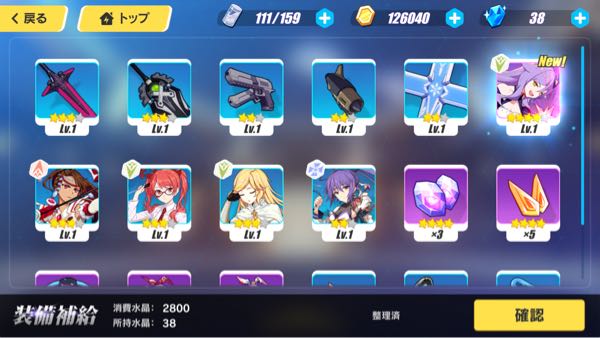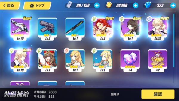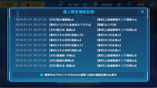 年末年始風邪ひいてた。 27に熱出たのに仕事は28まで、しかも自分で行かないと何ともならんやつ、死んだw なんせ寒くて眠れないんだよ、やっと寝れたと思ったらそれが夢で目がさめるとか、気が狂いかけたw 熱は1回測っただけ、38.4 麻雀ならザンクだなとかボケかえってた。 まあ、明けて2日にやっと治って絶賛引きこもりちうなう。 で熱出た日がアプデだったんだよ、崩壊さんの。 もう心の中で諭吉握りしめてたんだけど、一週間たっちゃってたからどうすっかなと。 元旦に貯めてた水晶で引いたけど、今様はカケラしかでなかった模様(記憶なし そして高熱でもなんでも毎日やることやってたら、一昨日くらいだっけ 今様解放 Aキャラだから、集めりゃ解放されんだよな。 課金しなくてよかた、風邪ありがとうw ついでに見てください、影舞がスリーエスになってます、カケラ20も余ってんだ、もらえるチケットやら貯めては薔薇狙いでガチャ引くんだけど、影舞ばっか出んだよ、しねや しかし、白練りなんて初期キャラなんぞ全くレベル上げてない、慌てて上げたけど、まだ54、ちっ で貯めた水晶で装備ガチャ 珍しくも2つでた、欲しいのはメイたそ用の刀だったんだけどな。 しかしまあなんですね、大発会狂ったようにてか、異次元か亜空間かってほど上がってましたね、おれもだいぶ含み損が減少しました(プラスになってないとかどんだけ高値掴みwww あー去年は12まんえんほどマイナスでした、チーン 今年こそ勝つw