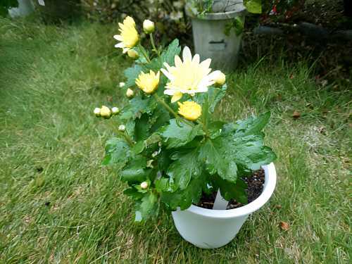 小さな鉢の黄菊が咲き出しました。名札には「ドーム菊」と鉢に差してあるので、昨年高幡不動の菊祭りで購入したものである様ですが、丸くドーム状にはなっていません。昨年、咲いた後に適切な施肥が必要だった様で、失念して仕舞ったのが様ですので、咲き終わった後粒上の肥料を撒いてあげる積りです。