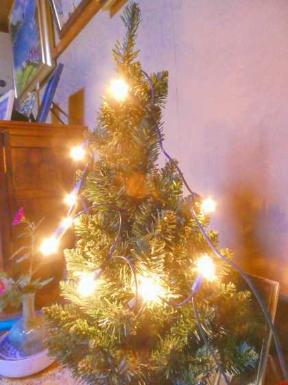米国では11月末の感謝祭(Thanks Giving)が終わりますと、12月末のクリスマスに向けてクリスマスツリーが飾られます。米国滞在を思い出して、我が家でもクリスマスツリーを点灯することにしました。2階の子供部屋の収納戸棚に仕舞ってありました小さなクリスマスツリーを取り出して、居間に持って来て、ランプ点灯してみました。子供達も出て行きまして独り住まいとなっていますが、少し部屋が華やかになった感じがしています。