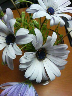 ディモルフォセカ と言います。 花びらの表の色も、裏の色も美しい。 花芯がブルーというのも、よろしいではありませんか。