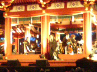 10月26日金曜日、鎌倉の鶴岡八幡宮の舞殿にて奉納ライブがあり、 出演者の元ちとせさんの衣装のスタイリングをさせていただきました。 他出演者は、大橋純子さん、一青窈さん、中孝介さん。 野外のため、雨の中観客は雨合羽を着て、唄に酔いしれていました。 今回の元さんの衣装 鷹の刺繍の黒留袖 アラビア風のサッシュベルトがポイント