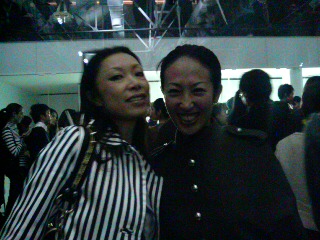 風邪ひいてないですか? 自覚症状ないうちに、気づいたら風邪ひいてたー あーくやしいなぁ… 私は幼稚園から中学卒業するまで、一度も学校休んだことないのが ひそかな自分の誇りだったの。丈夫と自負してたんです。 日々健康にとっても気をつけていた。(お酒をがぶ飲みしていることはさておき) 愛用は、100円ショップのネックウォーマー。 去年も、寝るとき必ず首に巻いて乗り切った。 夏場や部屋の中では、タオルを常に巻いてます。 首を温めていれば風邪ひかない!が自論なのです。 ある時は、酔っぱらったまま寝たらしく、朝起きたら、 全裸にネックウォーマーだけしてました(恥) 今回はたぶん、酔って帰ったときにちょっとしたスキに風邪菌が入り込んだに違いない。 あぁ、でも、ふと気づいたのは、身体が丈夫なのではなくて、気をつけてたから。 今までわりと元気にこれたけど、これから先は、 気をつけてても病気に勝てなかったり、もっともっと身体のケアをしてかなきゃ 老化についていけないだろうなぁ…ということ。しみじみ 私の人生の最終的な目標は、 花が枯れるように静かに死を迎えること。 病気せず元気に暮らし、生をまっとうしたい。 なかなか難しいことだと思います… どうしていきなり野宮真貴さんが?!と思いますよね。 真貴さんは「まみちゃんは若いんだから問題なし!」と いつも言うから(笑) 昨夜、天王洲アイルで G.V.G.V.のspring/summerコレクションが あり、そのときの写真。春夏ということで、元気でカラフル、 きれいな色の洪水でした。カラータイツが可愛かった! 真貴さんの隣でファッションショー見ると、なんだか自分も オシャレさんみたいな気分で見方も変わりそうです。 昨日は着物着るのもしんどく、洋服でした。 風邪のくせに背中がばっくり開いたミニのワンピを カイロ貼って着た。(←アホ) マッセメンシュのマントはお気に入りです。(真貴さんと色違い) 真貴さんの白いスニーカーが新鮮だった。 いつも素敵だけど昨夜も素敵でした。 なんか真貴さんのことばっかりですが、私が関心するのは、 いつも、バッグとかブローチとか細かいところまで 合わせて変えているというところ。 昨日はコートもストライプ、鼻ぐずぐずの私に さっと出してくれたテッシュケースもストライプだったよー お家にお邪魔すると、ティーカップなんかも いつも、いろんなので出して下さるので、 本当に根っからおしゃれなんだな、と思う。 そしてさらに素晴らしいことに、それがさりげないのです! 私は、いろいろ好きなもの集めてもしまい込んじゃって まめにとっかえひっかえなかなかしないからなー。 そんな素敵な真貴さんを、会うたびいろいろ ジロジロチェックしてしまうのです。