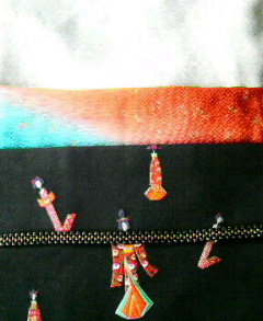 雛祭りらしいコーディネートをと、あね様人形の可愛い刺繍の帯を選びました。