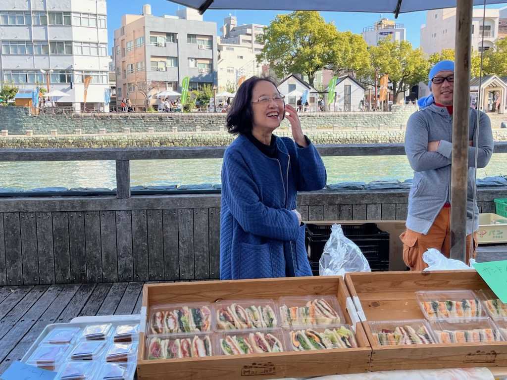 マルシェ帰りの家族連れの人たちが船着き場にやってきます