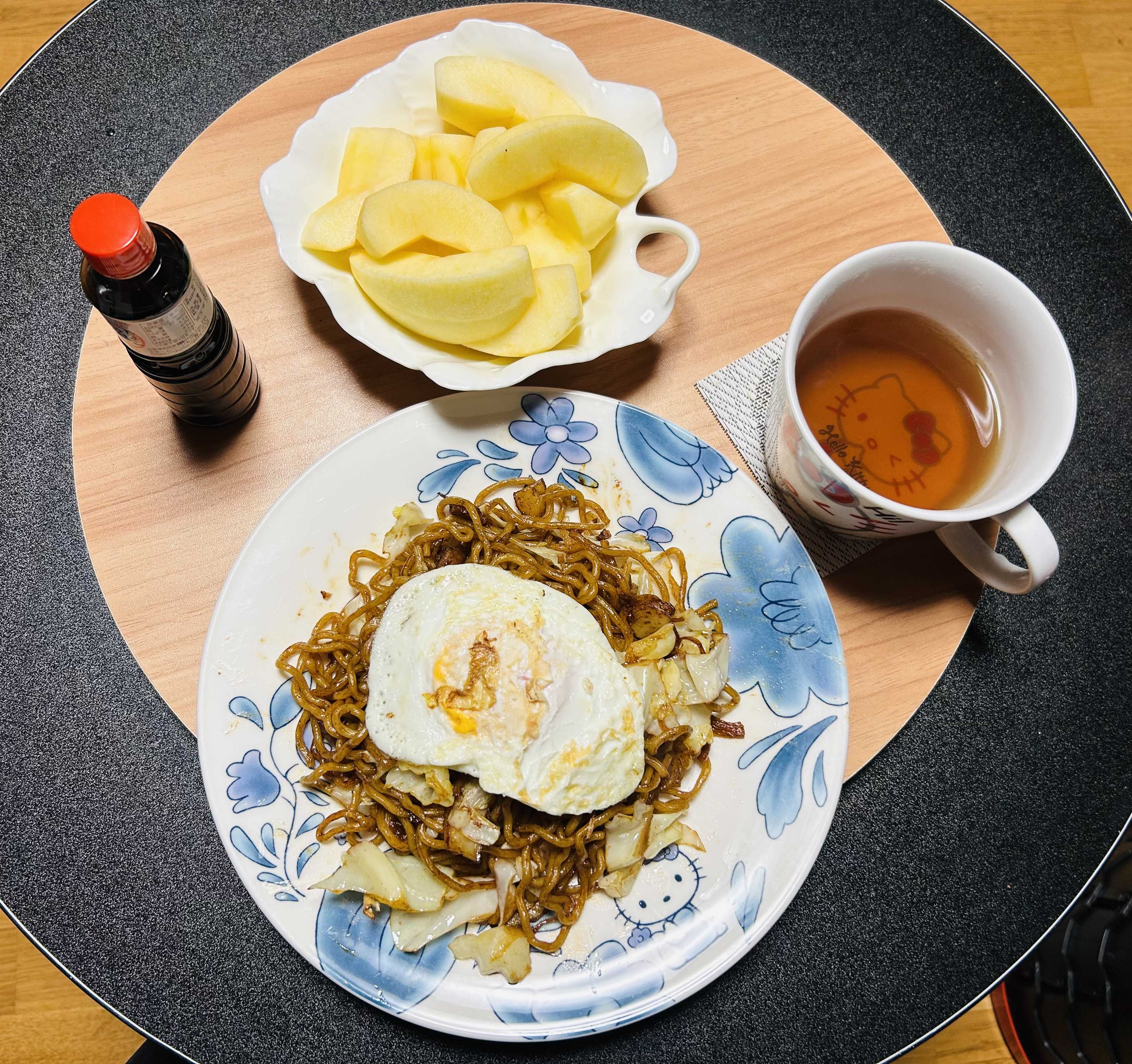明日友達がりんごを買いに来るので、カヌレを焼いたり投汁蕎麦の準備で忙しいので、夕食は手抜き焼きそば!