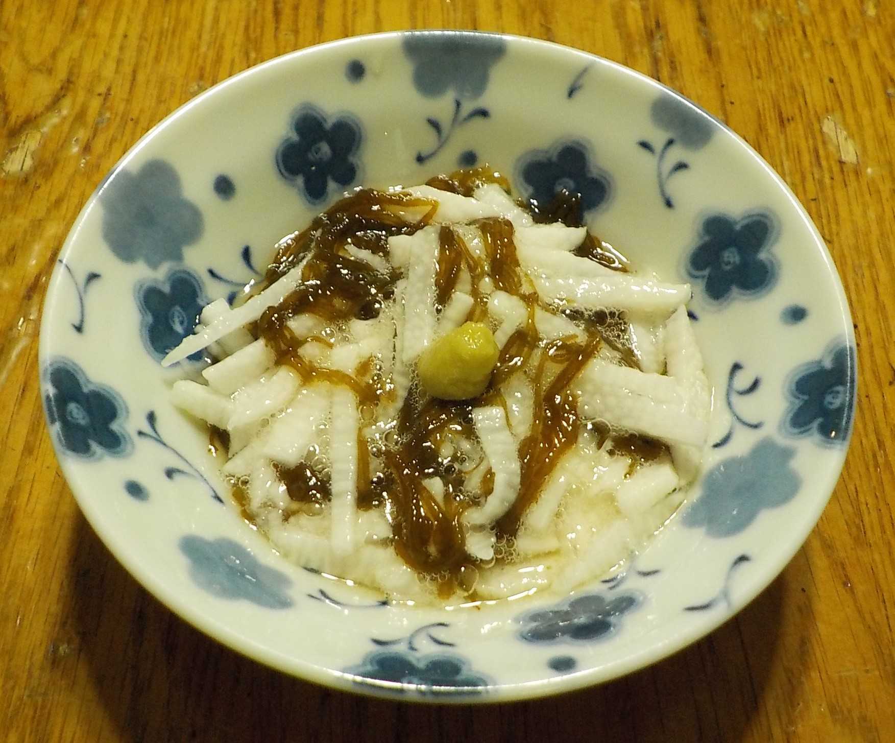 ※長芋はできるだけ細く切り、醤油を少し加えて、わさびを添えます