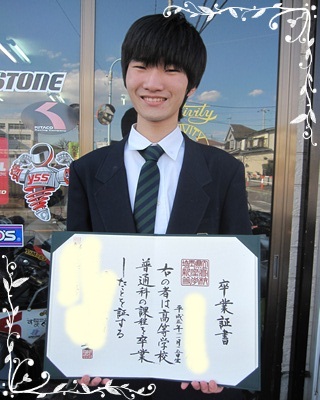 ここ数週間あれだけ天気が悪かったのに今日は晴天。ぼん1号、本日、高校を卒業しました。三年間皆勤賞を取るくらい健康に通うことが出来て本当に良かったです。