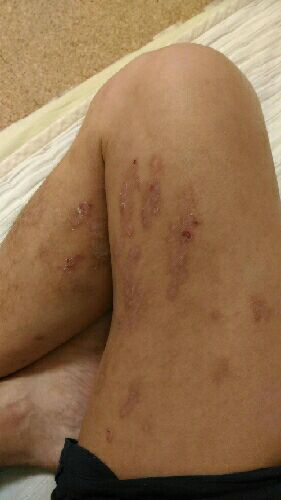 腕と首にジュクジュクがあります。 夜9時頃から四肢の痒みが出ます。 1時間程度で収まります。 痒みは最悪の時期に比べれば楽です。
