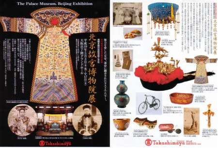 今日は、午前中は、昨日留守録しておいたテレビの俳句や美術番組を見たあと、免許の更新に行き、その後、高島屋で開催されている北京故宮博物院展へ行った。北京故宮博物院には中国歴代の皇帝が集めた文物100万点以上が収蔵されていうそうだが、今回は、西太后と宣統帝(溥儀)の二人にスポットを当てたもので、120点の品々が展示されていた。展示は3部に分けられていた。第一部 清朝の黎明・沖天 -偉大なるご先祖さま第二部 清朝の動揺 -女帝・西太后第三部 清王朝の落日 -最後の皇帝・宣統帝溥儀第一部では、ヌルハチ、康き帝、よう正帝、乾隆帝の絹本肖像画、青玉「皇帝之印」、粉彩瑠空蓋ごう、刷黒龍鳳描金五龍円盤、青花鶴鹿紋鳳尾尊、青玉山子、画琺瑯丹風紋蓋碗など10点が展示されていた。ここの展示品は、どれも正倉院の御物のような気品のあるものだった。第二部では、西太后の生活道具のようなものが多く、衣服、礼服、冠、装身具、香水瓶、化粧品入れ、櫛、鏡、按摩器、指輪、腕輪、簪、靴、帽子飾り、餃子の型、コーヒー沸し、ミルク入れ、金冊文、食器入れ、キセル、大鍋、碗、孫の手、瓶、盆、額縁、図冊、漢方薬いろいろ、扇風機人形などの展示とともに、「垂簾聴政の間」が原寸大で再現されていた。3歳で即位した宣統帝溥儀に代って、西太后が摂政として政治を行っていた部屋である。第三部でも、宣統帝溥儀の生活道具が多く、礼服、靴、自転車、幻灯機、カメラ、香水瓶、筆、筆立て、硯、眼鏡、玩具、鳥かご、風呂桶、人形、胡桃、こおろぎ缶、扇風機、暦、印鑑、ごう、箱、碗、皿、ほう、四書五経、百物図、御花図など、ゴルフもしていたようだ。激動の時代を生きた二人を偲びながら見たが、展示されていたものは、歴史的・博物的価値はあるかもしれないが、美術的な価値のあるものとは思われないものが多く、第1部で展示されている宝物のような展示がたくさん見られると思って行った者には期待はずれだ。写真はパンフレット。故宮院 珍品多し 夏の天